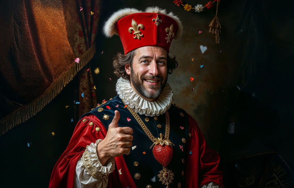 Voor deze campagne zetten we voor het eerst op grotere schaal AI in om historische beelden te moderniseren. Op basis van oude tekeningen van Graaf Floris V ontwikkelden we een eigentijdse, herkenbare versie van de graaf — soms zelfs geanimeerd. Niet met één druk op de knop, maar via een proces van genereren, bijschaven, retoucheren en opschalen.