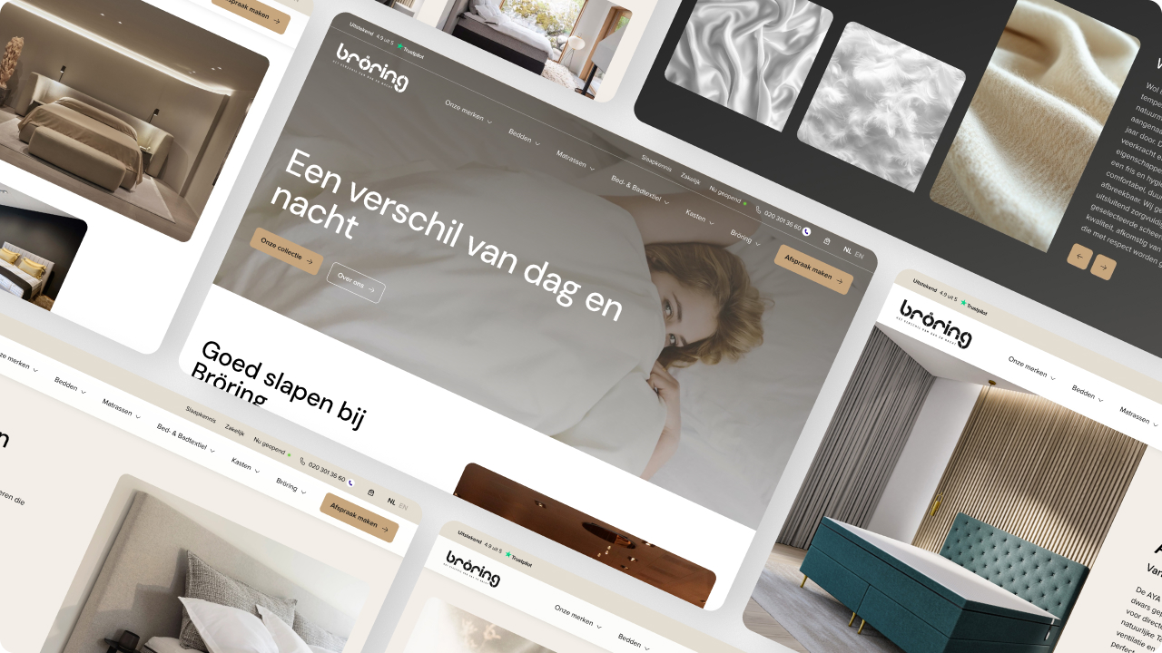 Bröring is geen doorsnee beddenwinkel. Het is een plek waar klanten niet alleen kiezen voor kwaliteit, maar ook voor persoonlijk advies en eindeloze mogelijkheden. Die meerwaarde kwam online te weinig naar voren. In nauwe samenwerking met het team van Bröring en marketingpartner Bambuu zijn we aan de slag gegaan met een nieuwe website die het verhaal vertelt zoals het bedoeld is: exclusief, persoonlijk en servicegericht.