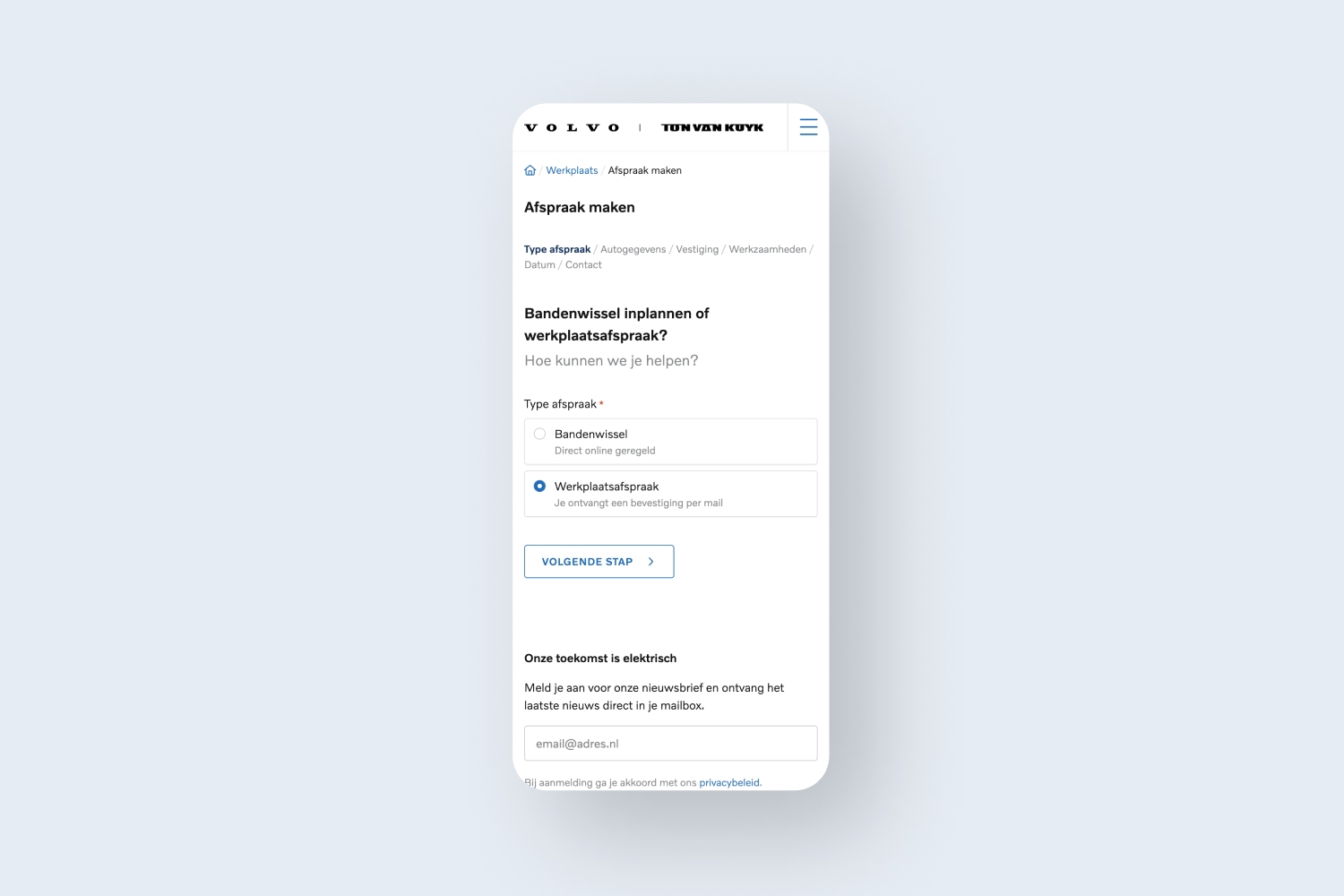 Binnen het nieuwe platform hebben wij een webshop geĂ¯ntegreerd waarin klanten eenvoudig accessoires kunnen aanschaffen voor hun Volvo. Via de overzichtspagina selecteert de klant eerst het model zodat je alleen relevante producten te zien krijgt.