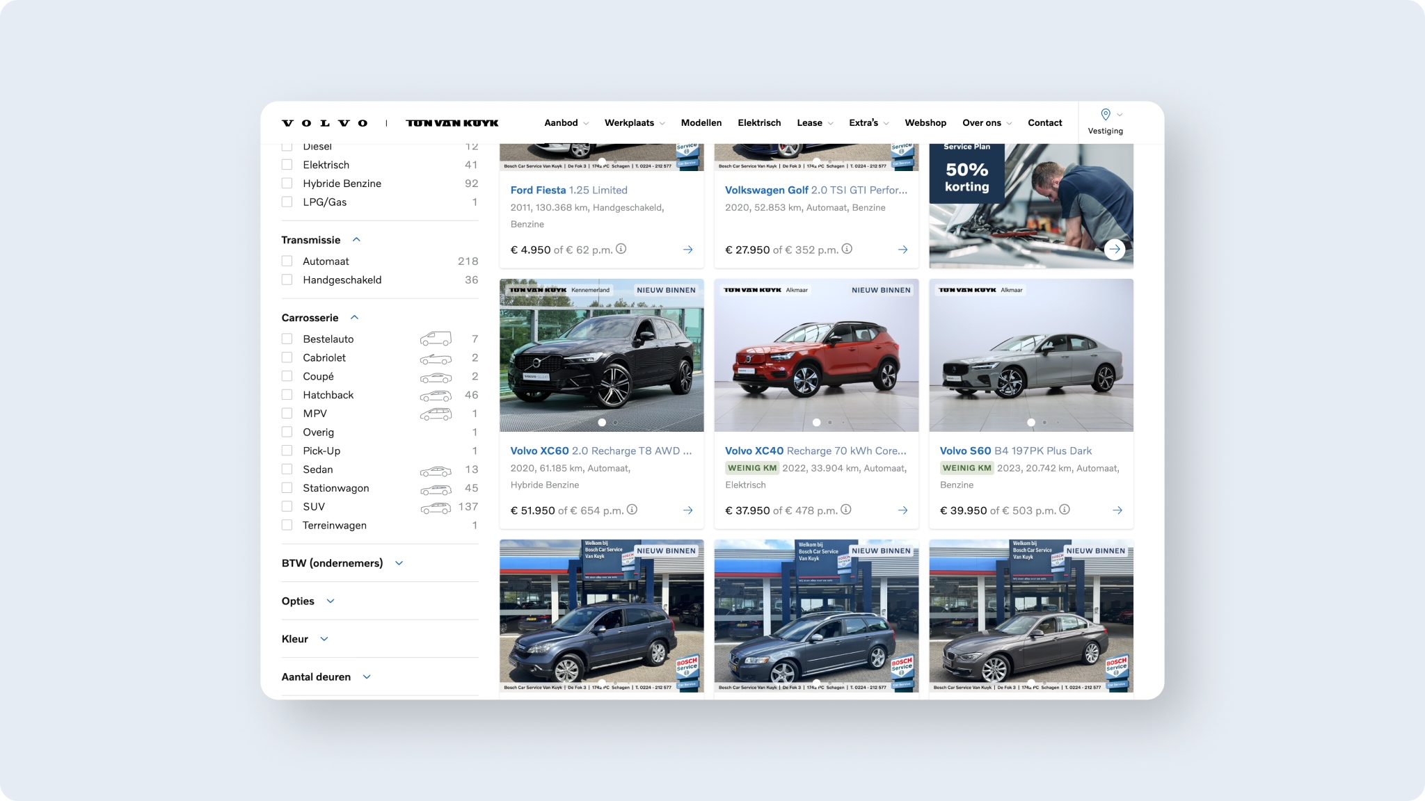 Ton van Kuyk is al meer dan 25 jaar dé Volvo dealer van Noord-Holland. Met vestigingen in Alkmaar, Beverwijk, Hoorn en Purmerend zorgen ze voor een klantbeleving waar je u tegen zegt. Op online vlak was er nog genoeg ruimte voor verbetering. In een half jaar tijd hebben wij een volledig nieuw platform neergezet. Hoe? Dat lees je in deze case.